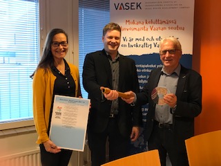 VASEKin edustaja Kristoffer Jansson vastaanotti Kouluviestikarnevaalin Kultaisen kapulan merkiksi siitä, että VASEK ja Kouluviestikarnevaalin Tukisäätiö ovat tehneet hyvää yhteistyötä edistääkseen lasten ja nuorten liikkumista sekä etsiäkseen keinoja ilmastonmuutoksen hillitsemiseksi. Kultainen kapula on aikaisemmin luovutettu myös Pohjola Vakuutukselle, Vismalle, Tampereen kaupungille sekä Vaasan kaupungille. Myös Motonet, Sanomalehti Pohjalainen, Lakea, UPCPrint ja Hartman saavat omansa.